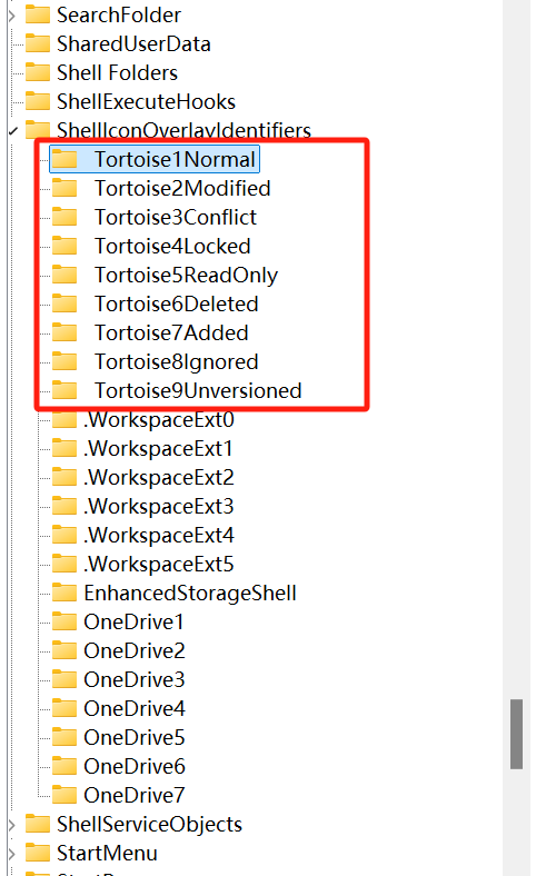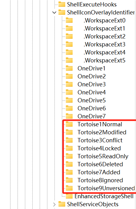 打开注册表编辑器(regedit),导航到 HKEY_LOCAL_MACHINE\SOFTWARE\Microsoft\Windows\CurrentVersion\Explorer\ShellIconOverlayIdentifiers。